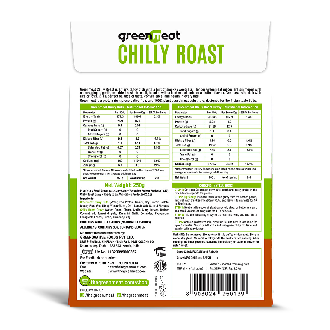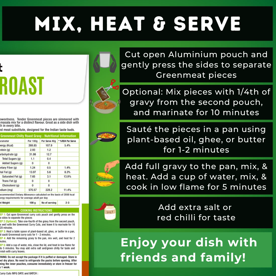 - Healthy, versatile, 100% plant based Greenmeat Curry Cuts – designed for the Indian Taste Buds.