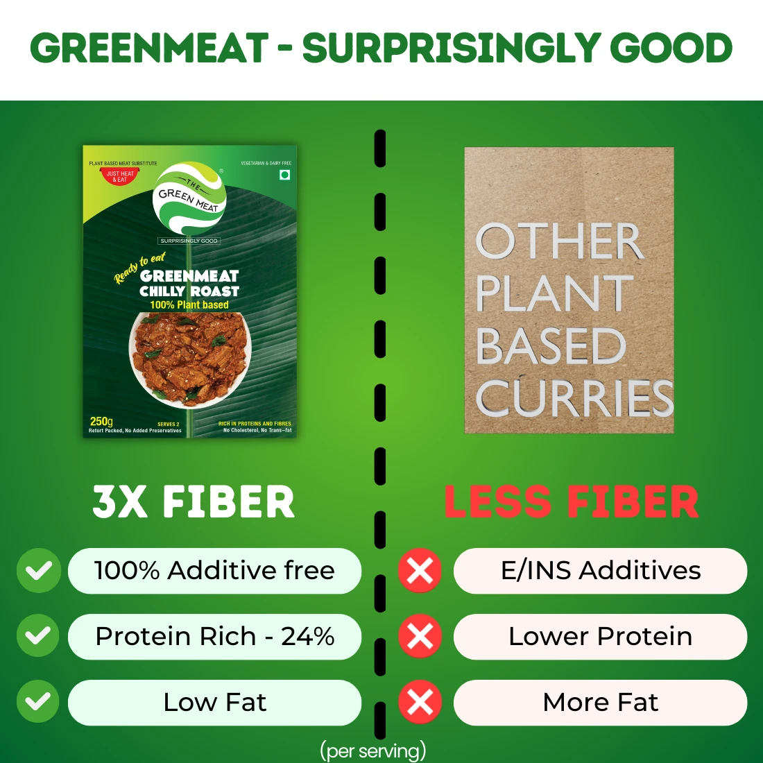 Experience the rich, spicy taste of GreenMeat Vegetarian Chilli Roast. Visit our website, select your pack, and place your order in just a few easy steps. Inspired by the rich, traditional flavours of Mangalore Ghee Roast, this protein rich meat substitute is made specifically for vegans and health-conscious food enthusiasts. Delivering fresh and fast right to your doorstep guarantees convenience without compromising quality. Don’t wait order now Greenmeat from Vegetarian meat substitutes and transform your meals with a flavorful twist that fuels both your body and your passion for great food.Related products