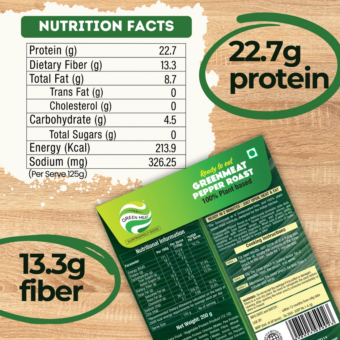 Savor the bold taste of GreenMeat Pepper Roast, a delicious ready to eat vegetarian Pepper Roast made for those who crave rich flavours without compromising their values. Packed with protein and crafted to mimic the texture and taste of traditional roast meat, this vegetarian pepper chicken roast brings together spice, health, and convenience in one ready-to-serve pack. Whether you are a vegetarian, vegan, or simply exploring plant-based options, our high protein vegetarian dish is the perfect addition to your plate.Product Overview